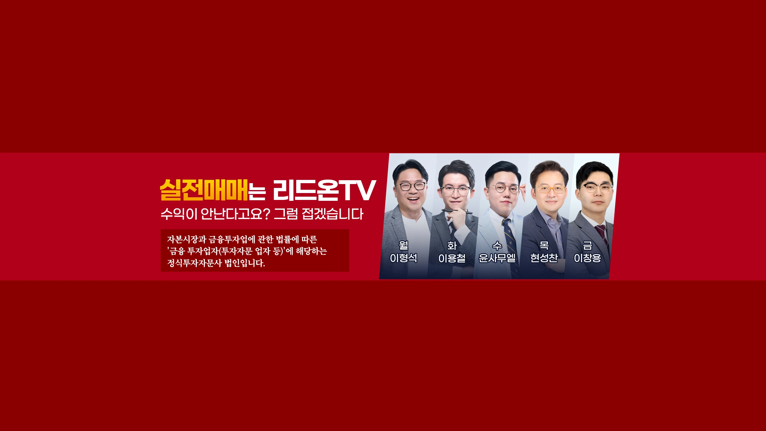 "신뢰할 수 있는 투자 전문가와 함께하는 주식 시장" 투자는 혼자서 하는 것이 아닙니다. 어떤 종목을 선택해야 할지, 언제 매매해야 할지 고민된다면? 자본시장과 금융투자업에 관한 법률에 따른 정식 투자자문사 리드온에서 당신의 투자 스타일에 맞는 전문가와 함께하세요. 🔹 하루 종일 차트를 볼 필요 없이, 전문가의 분석을 바탕으로 투자할 수 있습니다. 🔹 법적으로 인증된 투자 자문 서비스를 통해 더 안전하고 체계적인 투자 환경을 제공합니다. 🔹 주식 시장에서 흔들리지 않도록, 정확한 매매 전략과 노하우를 전해드립니다. 📌 지금, 신뢰할 수 있는 전문가와 함께 당신만의 투자 로드맵을 완성하세요.