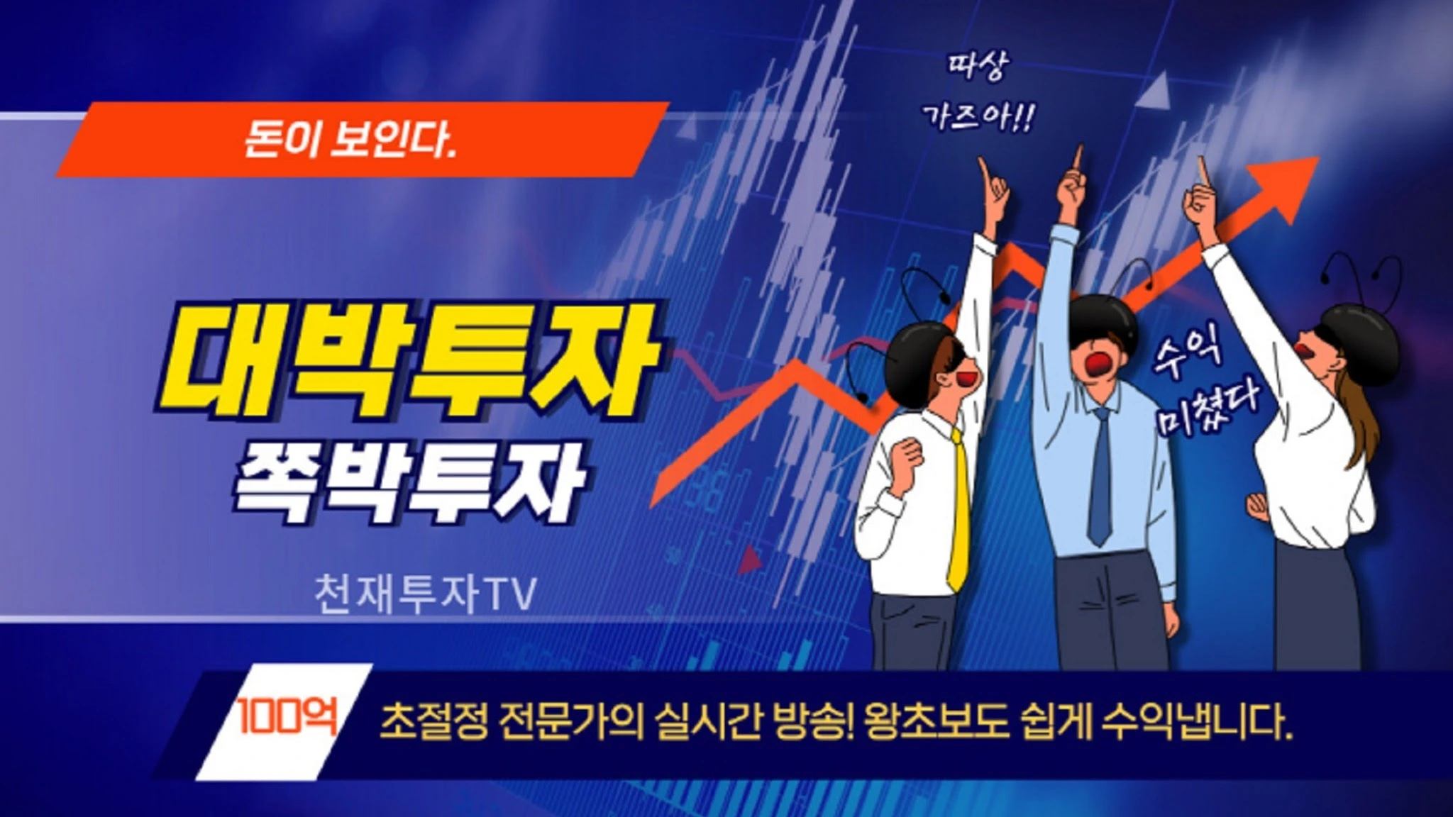 ★ 주린이도 너무 쉽게 돈법니다! 클래스가 완전 다릅니다. ★ 주식/ 코인투자로 가장 쉽고 빠르게 돈을 벌려면 '천재투자TV'가 해답을 제시합니다. - 개미들이 쌍수를 들고 환호하고, 수익인증 올리고 난리가 났습니다. 그것도 단 한번이 아니라 꾸준히 큰 수익을 내고 있습니다. - 빨리 입장하지 않으면 다른 사람들이 수익 다 챙겨 가 버립니다. 뭉기적 대고 있을 시간이 없어요! ★ 왕초보들도 초급, 중급, 고급 교육을 통해 투자고수로 만들어 드립니다. - 주식투자로 팔자를 바꾸고, 누구에게도 부럽지 않을 경제적 신분상승이 가능합니다. - 고기잡는 법을 배워 완벽하게 홀로서기 할 수 있습니다. ▣ '천재투자TV'를 이용해야만 하는 투자자 - 혼자의 힘으로 열심히 노력했으나 도무지 큰 수익을 내 본 역사가 없는 분 - 주식투자 하면서 상한가를 단 한번도 먹어보지 못한 분 - 주가가 쳐 올라가면 그냥 추격매수하여 수익은 커녕 상투에 물려 개고생 하는 분 - 주식,코인투자
