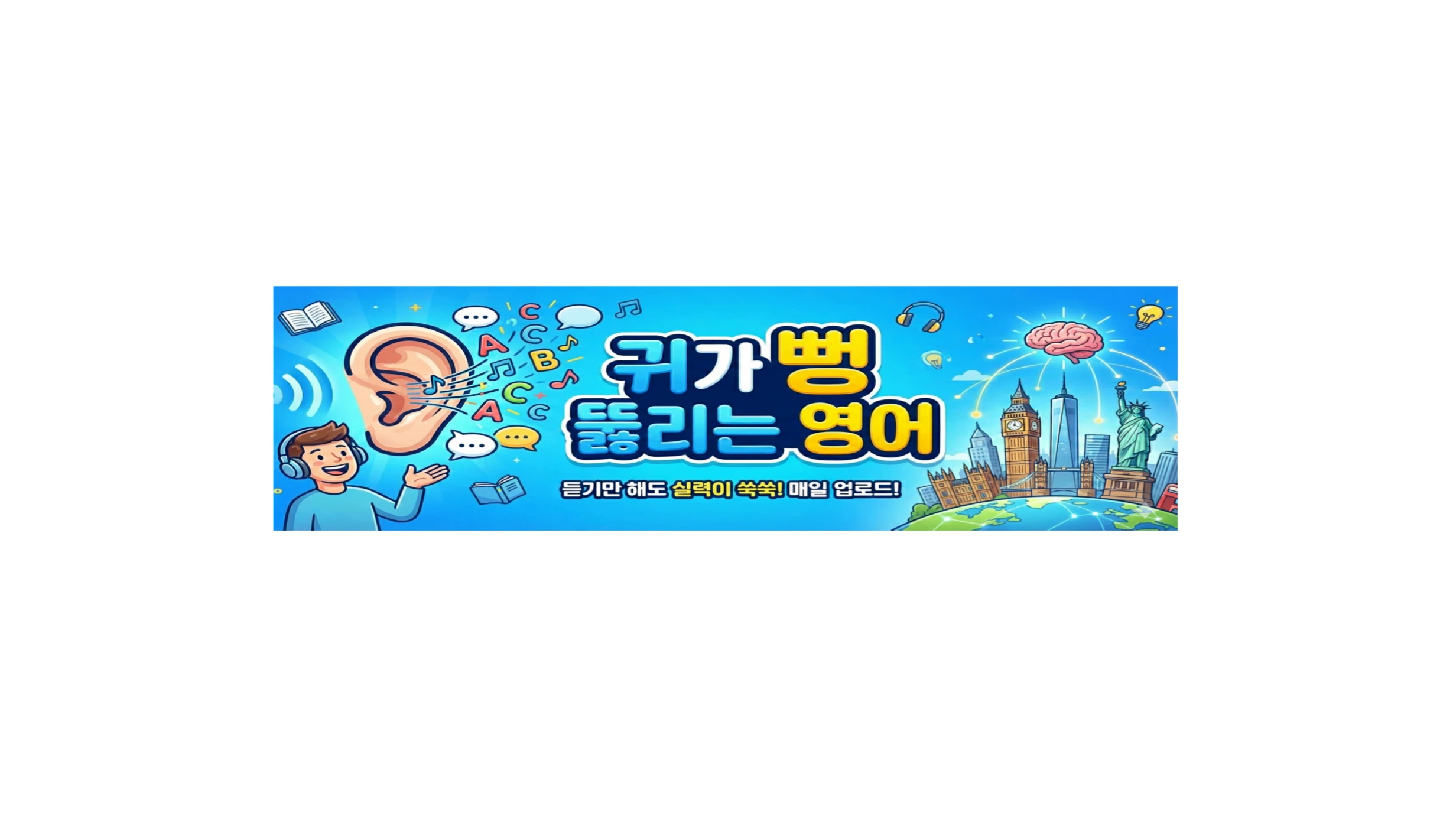 영어 듣기, 영어 리스닝, 영어 회화 아직도 어렵게만 느껴지시나요? ⭐귀가 뻥 뚫리는 영어⭐와 함께라면 하루 30분으로 영어가 ‘들리는 순간’을 경험할 수 있어요. 영어 듣기 훈련에 최적화된 4단계 학습법과 매일 달라지는 다채로운 주제를 통해 초보자부터 중급, 고급 학습자까지 누구나 쉽고 재미있게 영어 공부가 가능합니다. 📌 학습 단계 ✅ Step 1: 자막 없이 듣기 ✅ Step 2: 자막 보며 듣기 ✅ Step 3: 문장별 10번씩 듣기 ✅ Step 4: 다시 자막 없이 듣기 ✨ 요일별 학습 주제 📖 월요일 – 이야기 : 일상 스토리로 자연스러운 듣기 🗨️ 화요일 – 회화 : 실제 대화로 익히는 실용 표현 📢 수요일 – 광고 · 안내 : 생활 속 안내로 청취력 향상 📰 목요일 – 뉴스 : 정보성 뉴스로 어휘·표현 확장 💼 금요일 – 여행 · 비즈니스 : 업무·여행 필수 표현 익히기 ✏️ 토요일 – 수업 : 영어 설명 듣기, 이해력 강화 🐭 일요일 – 영어 동