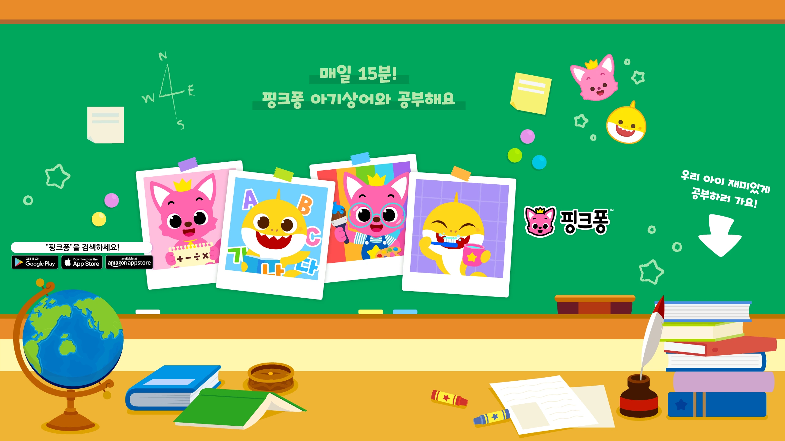 전 세계 어린이들의 마음을 사로잡은 핑크퐁! '핑크퐁! 홈스쿨'에서 한글, 수학, 영어는 물론, 동물과 곤충, 공룡, 과학, 생활습관까지! 언제 어디서든 다양한 주제를 재미있게 배우며 즐거운 학습 시간을 가져보세요! 공식 유튜브 채널을 구독하시면 매주 업로드되는 영상을 가장 빠르게 만나보실 수 있습니다. 지금 바로 유튜브 [구독] 버튼을 눌러주세요! 더핑크퐁컴퍼니의 최신 소식을 만나보세요. ★ 더핑크퐁컴퍼니 홈페이지: https://www.thepinkfongcompany.com/ ★ 더핑크퐁컴퍼니 인스타그램: https://www.instagram.com/thepinkfongcompany/ 핑크퐁 SNS를 팔로우하고 다양한 정보, 이벤트 소식도 받아보세요! ★ 인스타그램: https://www.instagram.com/pinkfong.ko ★ 페이스북: https://www.facebook.com/pinkfong.ko ★핑크퐁 공식 블로그 :https://blog.naver