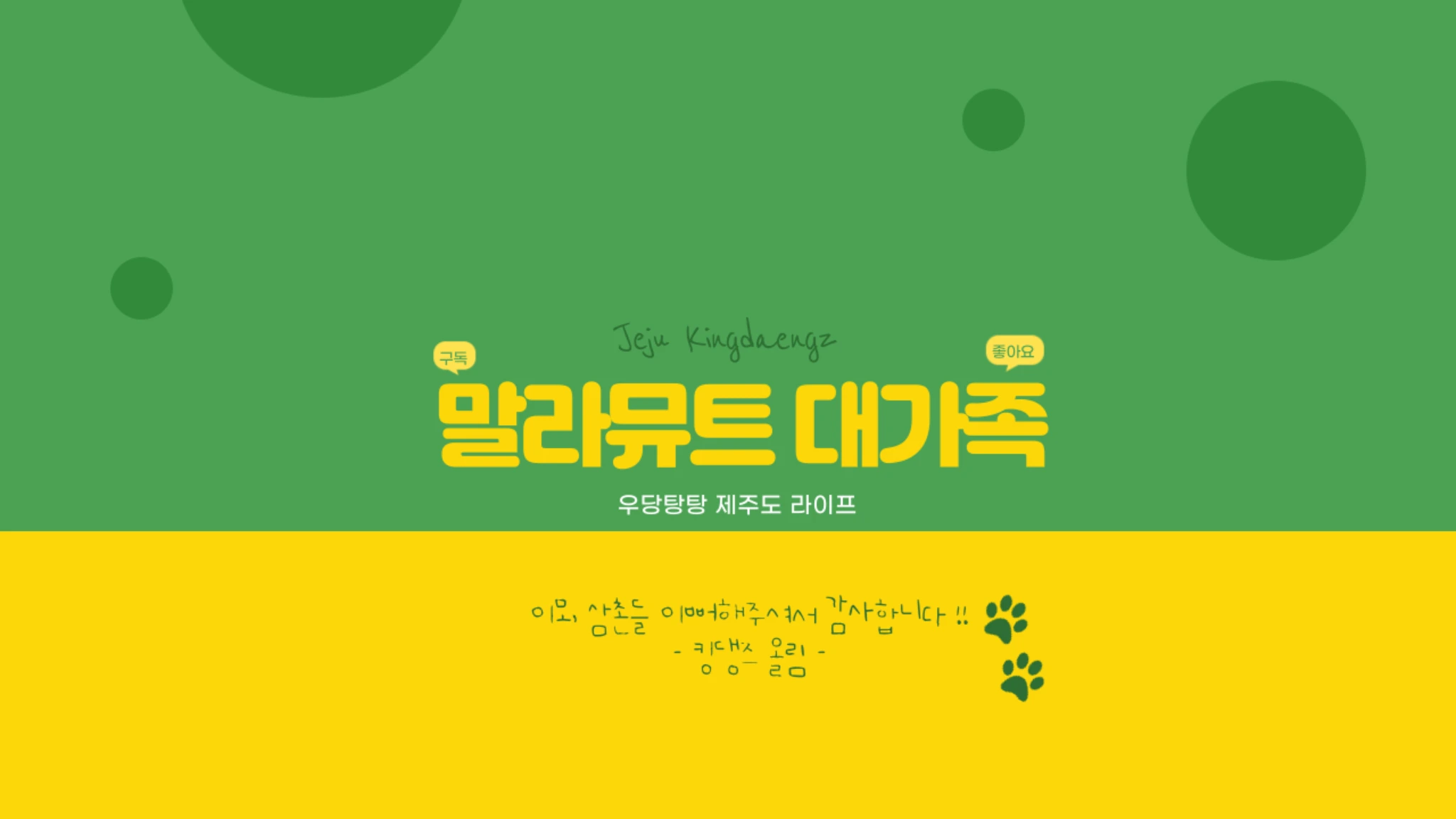 ♥제주도에 살고 있는 말라뮤트 대가족입니다♥ 킹댕즈 유튜브를 찾아주셔서 너무나 감사드립니다 ~~! 10마리 말라뮤트의 일상을 담은 채널입니다^^ ◆바나(부견),메이(모견) ◆1세대: 수림,점보,보라 ◆2세대: 크롬,톰,구찌,포드,루이 ☞재미있게 보셨다면 좋아요와 구독 그리고 소중한 의견 부탁 드립니다 :) #제주도말라뮤트 #말라뮤트 #말라뮤트대가족 #킹댕즈 #동물농장말라뮤트 #제주도말라뮤트 #제주도대형견 ▶ Instagram : https://www.instagram.com/kingdaengz