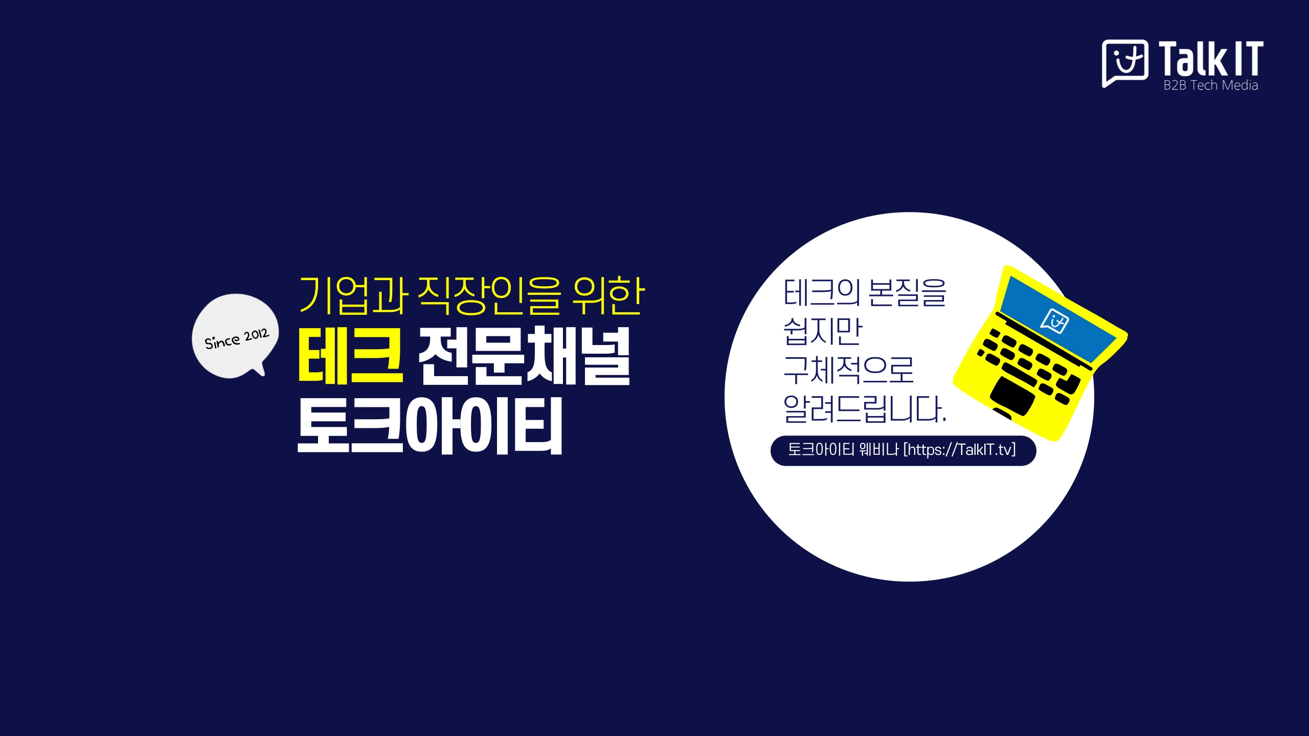 토크아이티는 "기업의 문제를 해결하는 기술과 신제품의 동향, 활용사례" 관련 콘텐츠와 생방송토크 웨비나를 2006년 부터 제공하고 있습니다. 아래 사이트에서 언제라도 편하게 전문가 생방송토크 웨비나를 무료로 시청하면서, 실시간으로 궁금한 점에 대한 답변을 들을 수 있습니다. ▶ 토크아이티 사이트: https://talkit.tv/ 테크 전문기업의 웨비나와 콘텐츠 제작 상담 연락처 ▶02-565-0012 ▶[email protected]