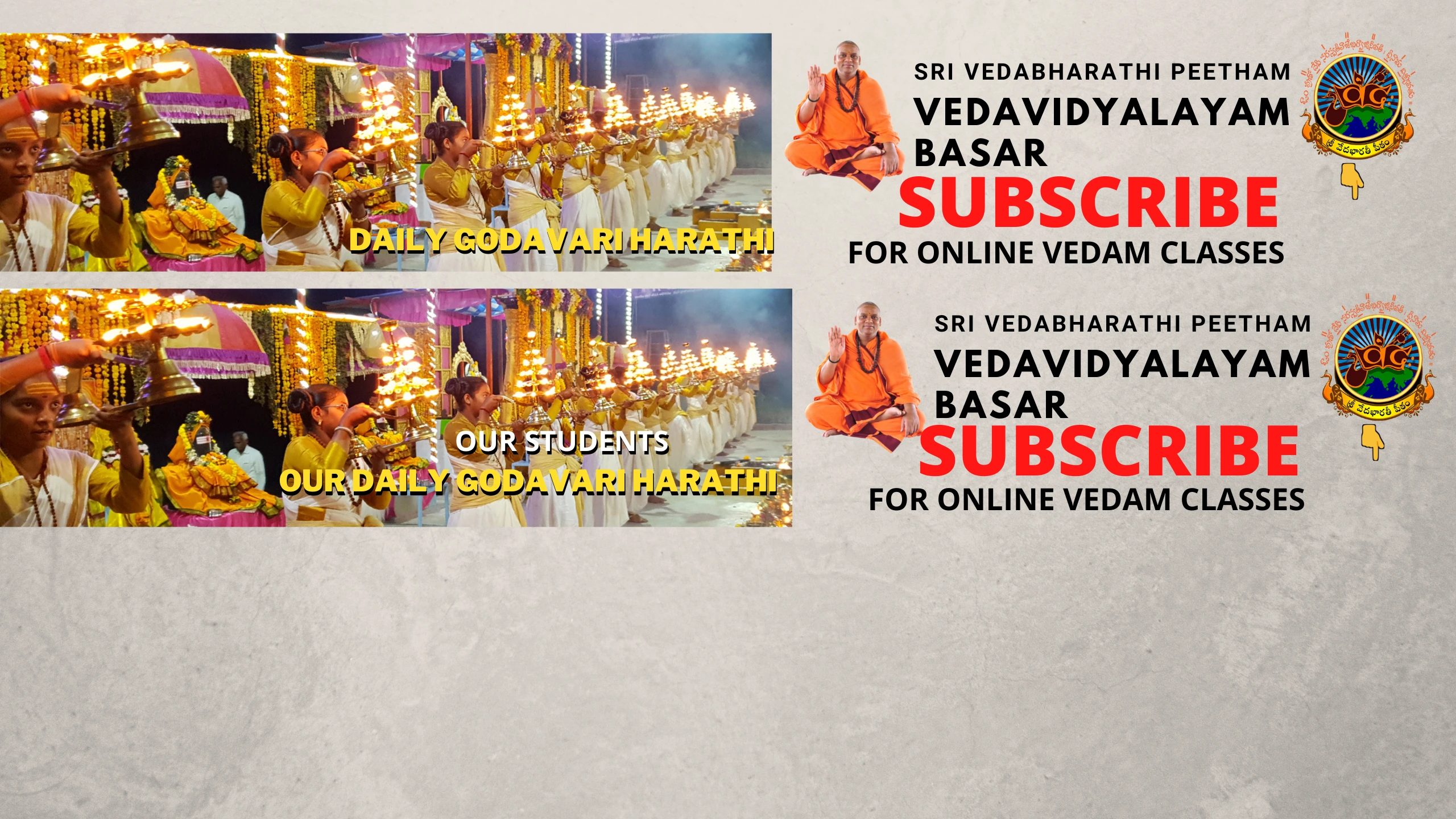 "About Veda Bharathi Peetham" Veda Bharathi Peetham was established in the year 2008 by Sri Veda Vidyanandagiri Swamiji, with the aim to teach Vedam to all communities, both Boys and Girls. Lot of damage has been done to our HINDU Religion. Our attempts have given fruitful results. But we had suffered without authentic monetary support. Vedabharathi Peetham is Gurukula type Vedic school. We are providing with Food, Shelter and Vedic classes from Seven years to, our aim was only to elevate Vedic scholar talents to Guru Sishyas, Not on collecting funds for development of our Ashram. Now we do following these services. Free Education, Medical Camps, Free Meals to poor villagers and public on the banks of Godavari River. And Free Eye Camps, Clean and Beauty Godavari River, Community Activities. From funds given by villagers and Swamiji Sisyas.